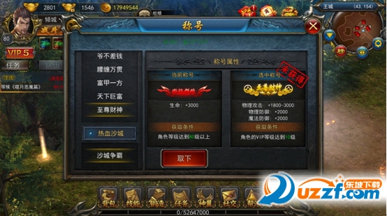 不同的游戏等级、不同的VIP等级和沙城主,