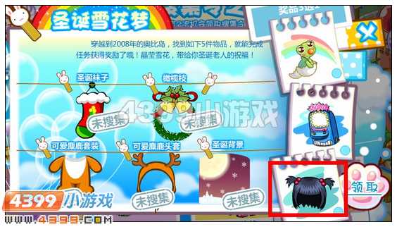 现在小奥比们可以到【奥比广场】,只要大家完成穿越绝版搜集令2008中的“圣诞雪花梦”任务,那么就可以获得俏皮妹妹发型哦~