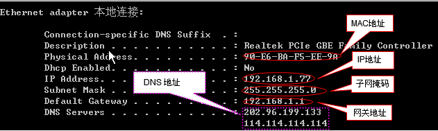 4、显示了本机的网卡所有信息