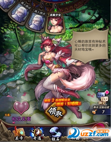 6.灵狐少女,可曾想过在探索中偶遇美丽的少女?武动乾坤的奇遇系统绝对可以满足你,林中偶遇的美丽少女,可以通过赠送琼浆等物品来增加你与她的好感度哦,不但可以获得元神,说不定还可以抱得美人归哦