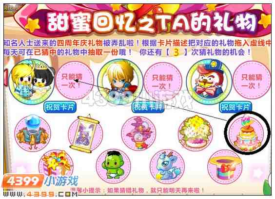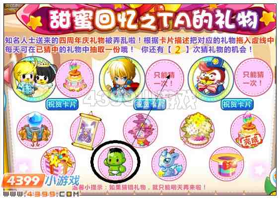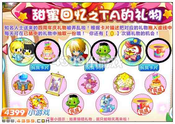 之后大家就开始为甜蜜回忆之TA的礼物给贺卡和礼物进行配对了!