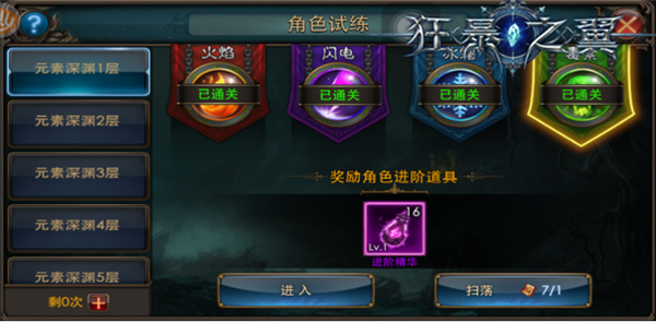 试炼副本,就是让玩家得到角色进阶精华从而对人物的生阶。如图所示