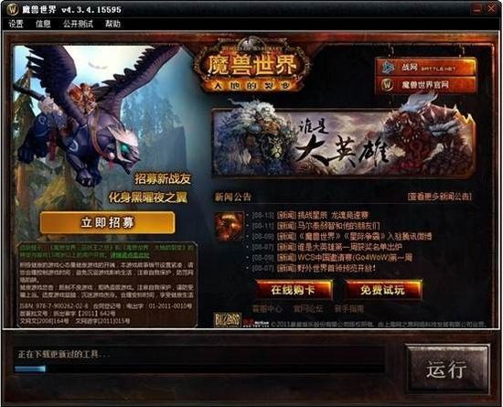 首先,请打开您的《魔兽世界》启动程序,启动程序将自动开始补丁工具的下载,并将你的更新安装文件更新至最新版本。