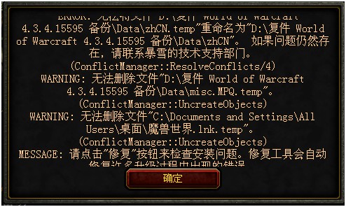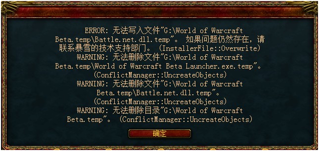 或"ERROR:无法将文件魔兽世界.link.temp重命名为魔兽世界.link。WARING:无法删除xxx.temp文件",