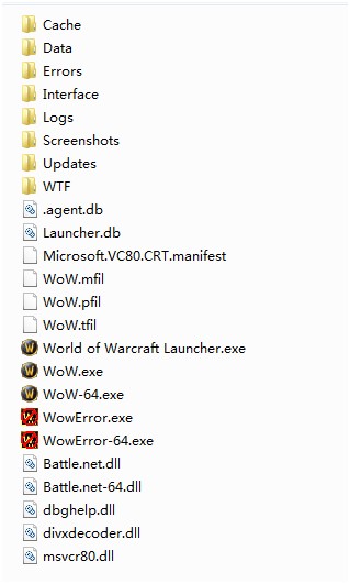 exe文件:World of Warcraft Launcher.exe,WoW.exe,WoW-64.exe,WowError.exe,WowError-64.exe,