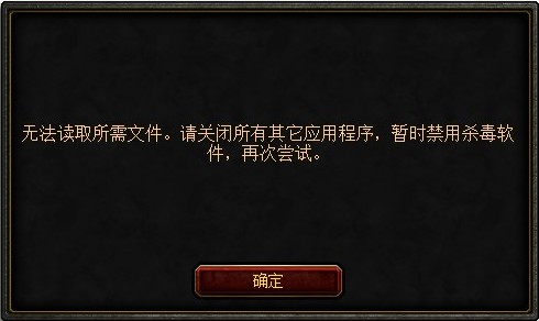 或"无法读取所需文件。请关闭所有其他应用程序,暂时禁用杀毒软件,再次尝试"