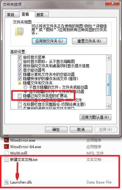 注:请确保未勾选文件夹选项中的 隐藏已知文件类型的扩展名