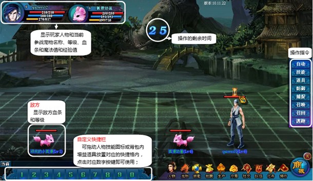 《斗破苍穹web》采用的是回合制战斗模式,操作剩余时间及回合的时间,在该时间内,如果没有对人物或宝宝下达指令,倒计时结束后系统将会自动进行攻击。