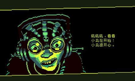 虽然我们可以将位于屏幕左下方的腾空射击动作理解为《Flappy Bird》的跳跃,但由于角色经常要面对来自前方的威胁,两路火力是无法同时输出的,因此在朝前开火的时候,角色自然就会自由落体。朝下有节奏地开火可以让自己在地板和天花板都被尖刺覆盖的场景中安全飞行,但稍有不慎就会和前方来不及摧毁的障碍物撞个满怀。所以二者的取舍和连接,自然就成为了本作的最大难点。和《罪恶之地》(Badland)系列类似的是,镜头从左到右的卷轴移动不会以主角当前的位置作为基准,这就意味着即便你没有同机关或者是满天飞的子弹亲密接触,也一样会被拖死。