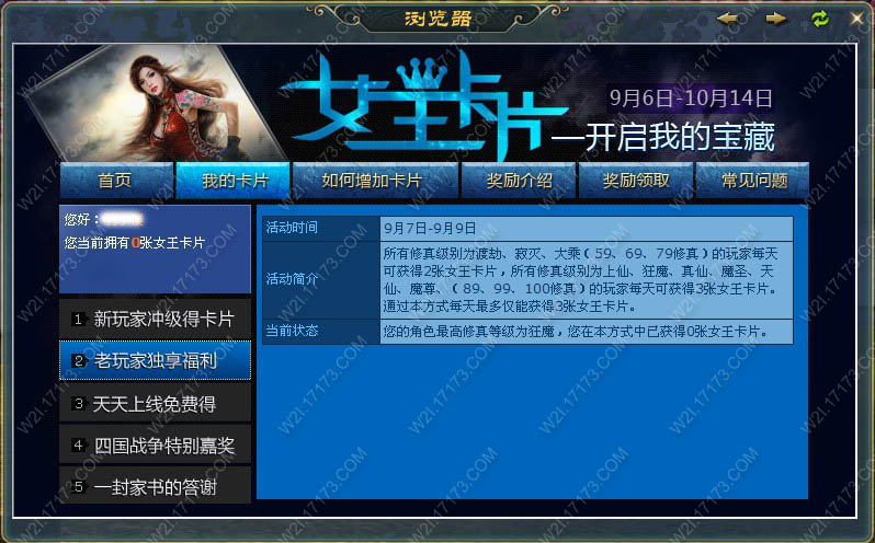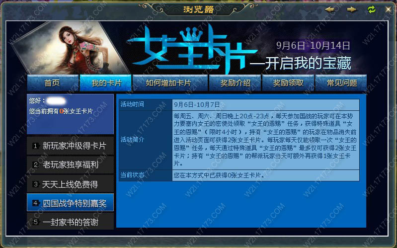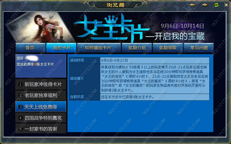 而且大家只要在线参与活动就能获得女王卡片哦: