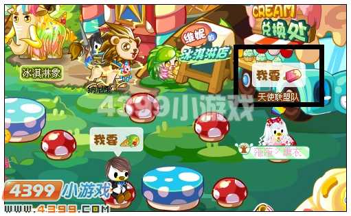 首先大家只要点击【冰淇淋森林】的红色蘑菇凳,然后坐到上面,你想吃的冰淇淋就会显示出来了。