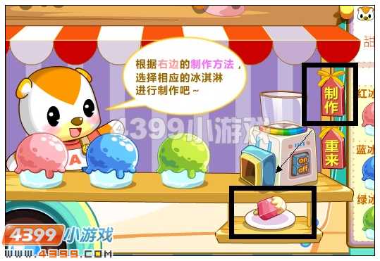 当大家舀满3个红冰淇淋后,就可点击制作按钮开始制作冰淇淋啦!