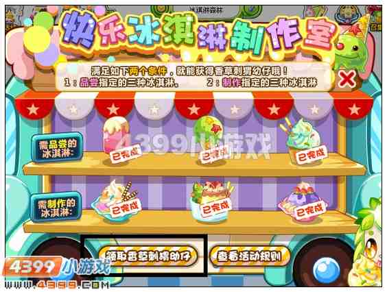 小奥比们可以到【糖果岛】的【冰淇淋森林】参加”森林里的冰淇淋店“活动,只要品尝指定的三种冰淇淋和制作指定的三种冰淇淋就可以去领取获得。