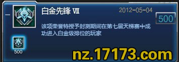 获取方式:该项荣誉特授予封测期间在第七届天梯赛中成功进入白金级排位的玩家。