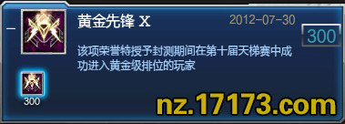 获取方式:该项荣誉特授予封测期间在第一届天梯赛中成功进入黄金级排位的玩家。