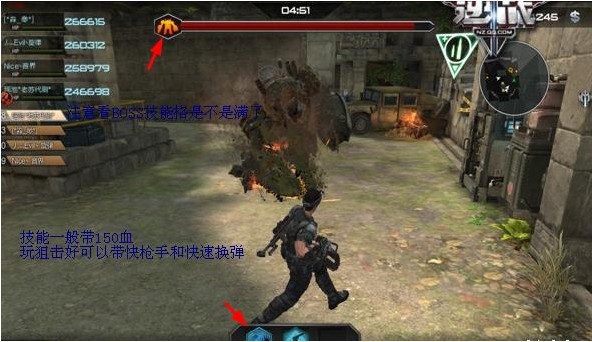 最好是在等BOSS放犁地的技能时,大家先准备拉好电锯,换好子弹,大约会禁止5秒,这时攻击最好不过了。