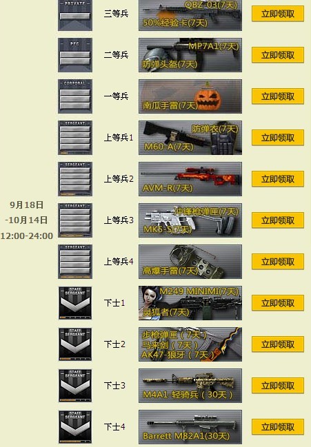 活动期间在教育专区达到指定军衔等级,次日可领取对应道具奖励。