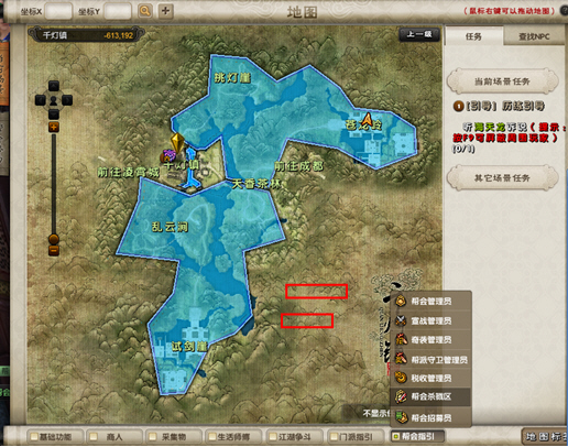 2. 具体区域可在点击世界地图中帮会引导标签下的帮会杀戮区来查看;