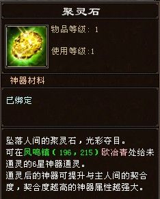 神兵升级需要以下道具:聚灵石,女娲石,女娲神石,玄冰石,以及玄海星岩。