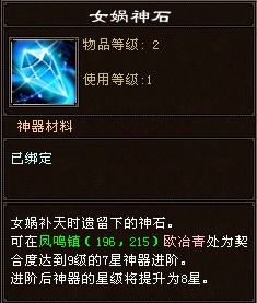 出处:玩家可去无崖子处,通过完成“追寻女娲石”和“追寻女娲神石”两个任务,从而获得女娲石和女娲神石。