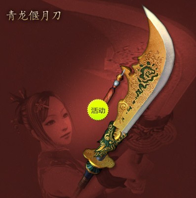 青龙偃月刀:据传三国名将关羽曾使此刀威震华夏,所以玩家又称其为关刀。其刀身呈青龙吞月之状,通体密布细碎花纹形似龙鳞,青龙偃月因而得名。