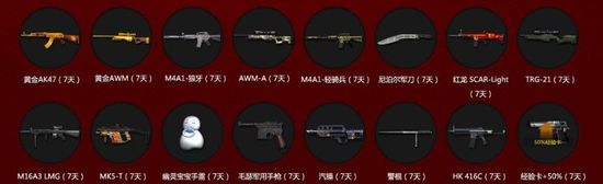 冲锋枪黄金AK47,红龙 SCAR-Light,实用的近身武器尼泊尔军刀,警棍,爆炸道具幽灵宝宝手雷,以及为经验值提升50%的经验卡等等,哈哈,奖励多多啊。