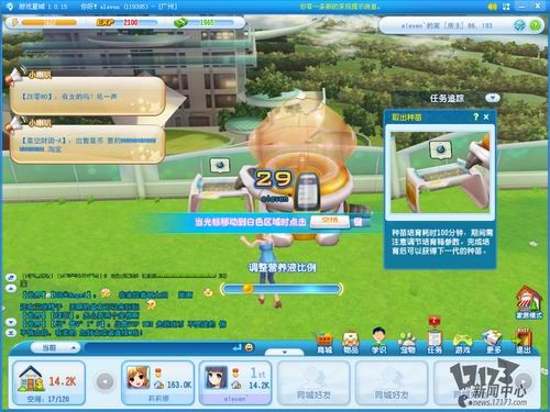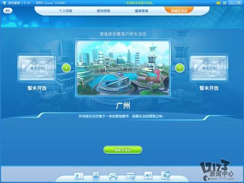 首先为大家介绍一下第一类玩法角色体验,游戏按照不同的城市划分了不同的生活区名称,此次测试只开放了广州。在生活区内玩家可以扮演一个角色,类似养成的玩法,通过各种任务与活动,来升级自己的学识。