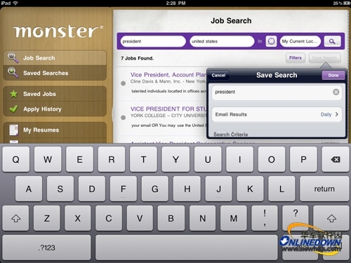 Monster.com是美国最大的招聘网站,你可以在iPad上一边娱乐一边找工作。这是一个非常有用的工具,帮助您找工作更轻松方便。