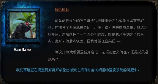 最近,国内外许多社区的玩家都反映说,“怪物强度系统离开游戏之后会自动关闭?”。目前已经有玩家在官方论坛上发布了这个问题,对此,社区经理表示他们已接到报告正在调查之中。