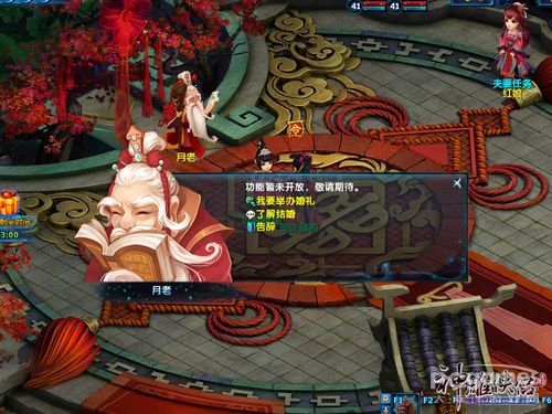 在《神雕侠侣》里,只要男女玩家的两情相悦相互友好度达到1000,那么就可以在临安找月老“登记领证”啦!