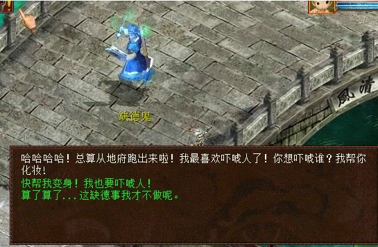 缺德鬼是由人们心中最阴暗的东西所化,它若愿意帮你化妆,那么你就可以用鬼怪的样子去吓唬NPC从而获得奖励了!