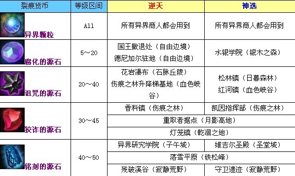 上面跟大家说到了各种源石与异界颗粒可以用来跟异界商人换取各种装备与道具。异界商人可分为一般异界物品商人与稀有异界物品商人,在每个区域中几乎都会有一般异界物品商人,但是稀有异界物品商人只敢出现在安全的大城镇(有传送点)中。