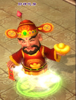 4.在NPC消失前,率先连续答对3道题目的玩家以及所在队伍中满足等级要求的玩家将获得奖励。答题的那一名玩家将得到一个特殊的BUFF,并会出现一个小型的财神化身或者福神化身飘在身后,持续30分钟。