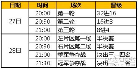 预选赛时间:每月8日~26日,每晚8:30~9:30开放。该时段内自由匹配进行比赛。
