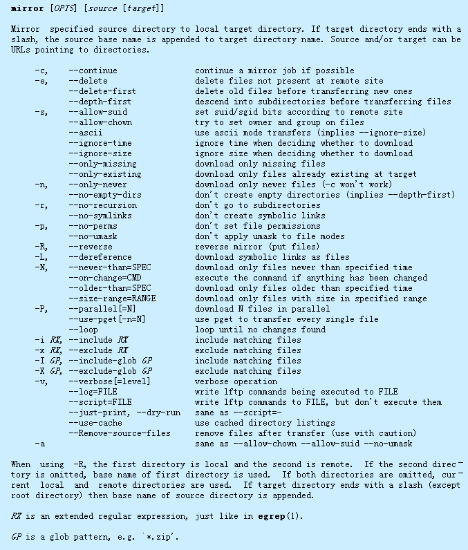 1、登陆ftp:lftp ftp://username:password@yourip/your/path