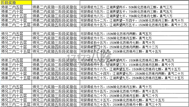大家可以看到拜师兄的奖励可真丰厚哦,修为、声望、真气、历练丹都可以统统收入囊中,还等什么,赶紧去拜师兄去吧!