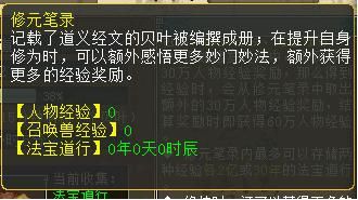 2、每刻钟(15分钟)需要用一页无字贝叶记录相应的心得体会,放入修元笔录中。无字贝叶可以从长安城杂货店内购买,暂时价格为1000两。也可以自行选择需要修炼的存储经验内容,现在提供人物经验、召唤兽经验和法宝道行。