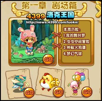 本周开启了剧场篇,剧场篇的历险包含:我的舞台梦、虫虫空间考验、神秘火鸡蛋、梦幻气球