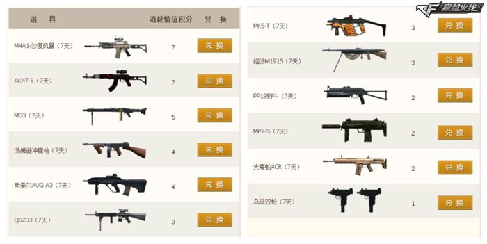 在本次新版本活动中,除了玩新地图抽奖之外,玩家还可以通过战友系统成为新手玩家的战友,来获取CF道具兑换资格。每成功成为另一位新手玩家的战友,可获得一个情谊积分,情谊积分可用兑换“M4A1-沙漠风暴”、“AK47-S”、“汤姆逊冲锋枪”等经典游戏道具。