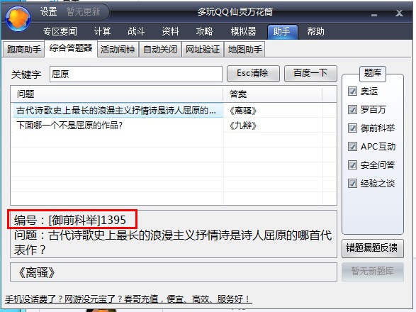 其实这款答题器就是多玩QQ仙灵万花筒,只不过最近万花筒进行了更新,加入了科举答题器。