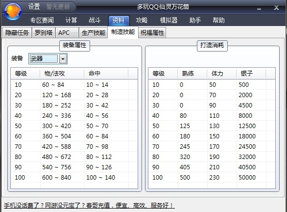 3、调整制造技能查询界面,增加腰坠、护心镜国标属性,及所有装备属性值的上限查询;
