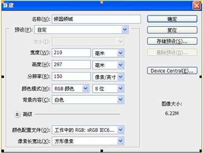 1、新建画布,命名为倾国倾城。规格如下图。