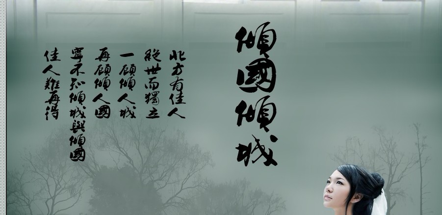 22、再用竖排文字工具,字体为叶根友行书繁,大小为14点,打上诗句:北方有佳人,绝世而独立 ,一顾倾人城,再顾倾人国 ,宁不知倾城与倾国,佳人难再得。如图: