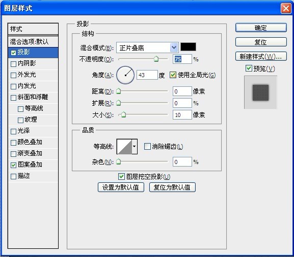 23、给组1,组2中的四个图层分别执行投影,参数如下图: