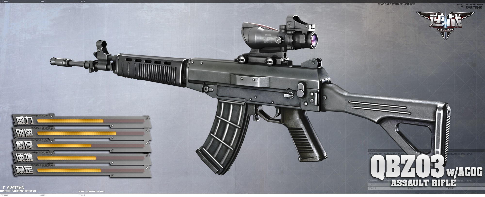 作为CF推出的新式武器,QBZ03也被称为03式突击步枪。它拥有极酷的黑色外表以及经典的外形,一上手就能使玩家感觉到十足的酷枪架势。