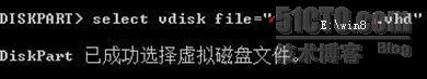 6、建立好VHD后,我们选择它,输入命令:select vdisk file="E:\win8.vhd