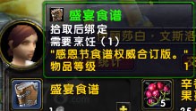 食谱:慢烤火鸡]需要烹饪等级280,需要的材料中,[野生火鸡]和[蜂蜜]由提瑞斯法林地杀野生火鸡获得,[蜂蜜]和[秋季香草]由上述感恩节NPC出售。