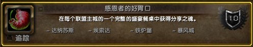 在每座联盟/部落主城的一个完整的盛宴餐桌中获得分享之魂。