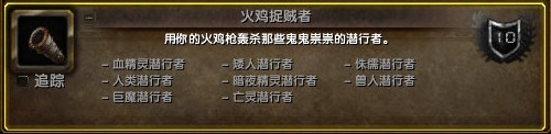 [火鸡枪]可以通过日常任务获得。需要打的是各个种族的盗贼,比较难的是兽人盗贼,巨魔盗贼和矮人盗贼。