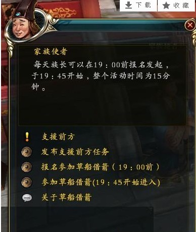 首先大家要先报名,必须是族长或者副族长。每天族长可以在19:00前报名发起,于19:45开始,整个活动时间为15分钟。